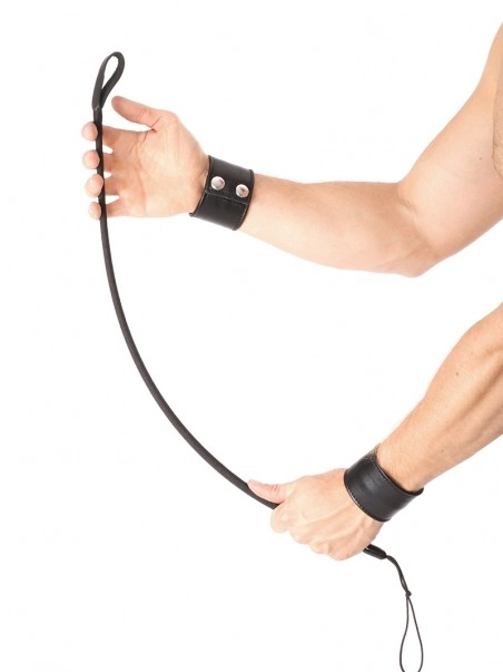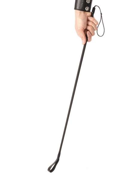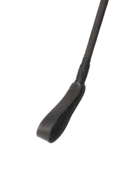 Cette cravache souple se compose d’une claquette en cuir et d’une baguette recouverte de nylon tressu00e9e qui permet une bonne prise en main.