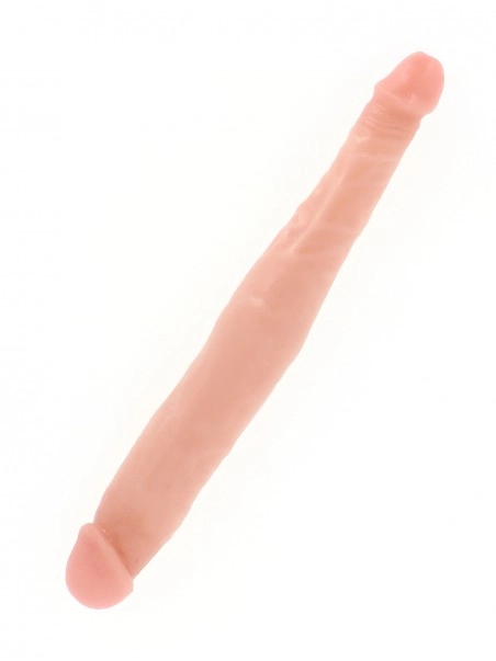 Double gode en PVC souple de couleur chair. Chacune des deux parties a une grosseur diffu00e9rente.