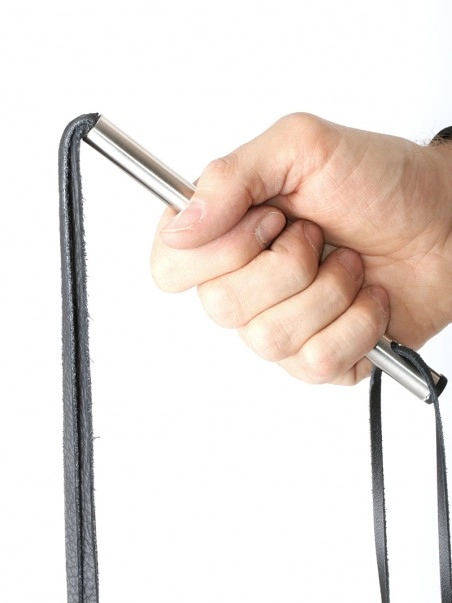 Idu00e9al pour les du00e9butants, mais aussi les plus expu00e9rimentu00e9s d’entre nous, ce martinet au design u00e9puru00e9 composu00e9 d’un manche en aluminium et de 6 laniu00e8res d’un cuir tru00e8s souple sera le parfait outil de vos sessions de punitions.u00a0