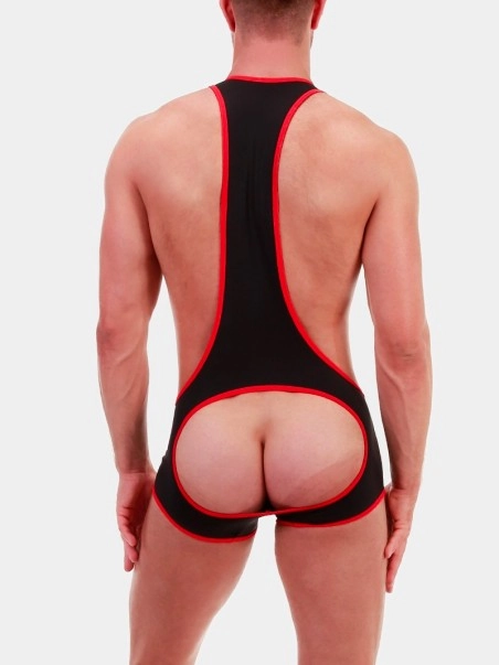 La coupe elle, est tru00e8s u00e9chancru00e9e et tru00e8s sexy. Cu00f4tu00e9 face les longues bretelles affinent la silhouette et plonge dans un shorty minimaliste assorti du2019une poche confortable u00e0 effet gros paquet. Cu00f4tu00e9 pile, le body tru00e8s u00e9chancru00e9 laisse une large part de visibilitu00e9 aux dorsaux, et cu2019est tant mieux, et se complu00e8te par une belle ouverture pour les fessiers.