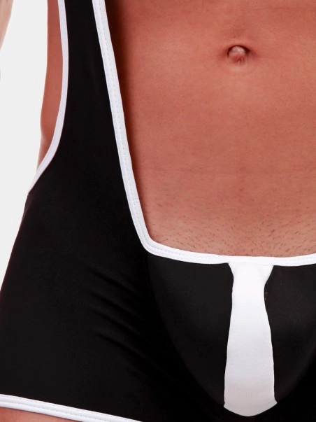 La coupe elle, est tru00e8s u00e9chancru00e9e et tru00e8s sexy. Cu00f4tu00e9 face les longues bretelles affinent la silhouette et plonge dans un shorty minimaliste assorti du2019une poche confortable u00e0 effet gros paquet. Cu00f4tu00e9 pile, le body tru00e8s u00e9chancru00e9 laisse une large part de visibilitu00e9 aux dorsaux, et cu2019est tant mieux, et se complu00e8te par une belle ouverture pour les fessiers.