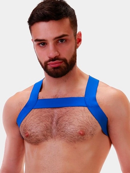 La coupe flatte les pectoraux. Le harnais est entiu00e8rement u00e9lastique, il s’ajuste pru00e9cisu00e9ment. Il convient u00e0 toutes les morphologies.