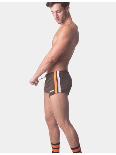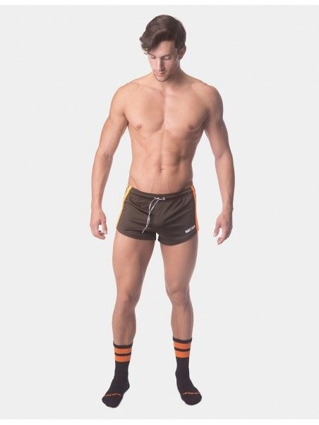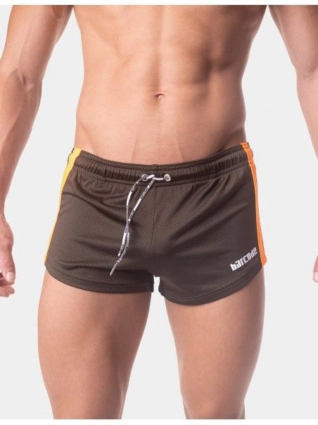 Notre mini short Timur de la marque allemande BarcodeBerlin fleure bon la saison estivale, et ses pu00e9riodes de chaleurs intenses. La coupe taille basse et tru00e8s pru00e9s du corps en font u00e9videmment un short ultra-sexy. Le design aux bandes latu00e9rales de couleurs coordonnu00e9es u00e0 la couleur dominante, ajoute une note sportive au short.