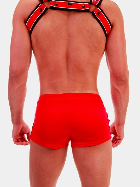 Notre mini short Timur de la marque allemande BarcodeBerlin fleure bon la saison estivale, et ses pu00e9riodes de chaleurs intenses. La coupe taille basse et tru00e8s pru00e9s du corps en font u00e9videmment un short ultra-sexy. Le design aux bandes latu00e9rales de couleurs coordonnu00e9es u00e0 la couleur dominante, ajoute une note sportive au short.