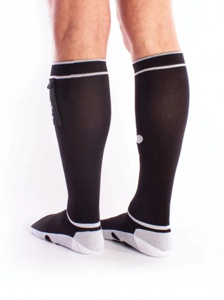 Complu00e9tez votre look sportswear et/ou puppy avec ces chaussettes hautes au message plutu00f4t clair. Elles disposent u00e9galement de deux petites poches tru00e8s pratiques en soiru00e9e.