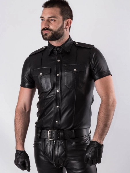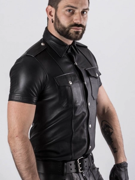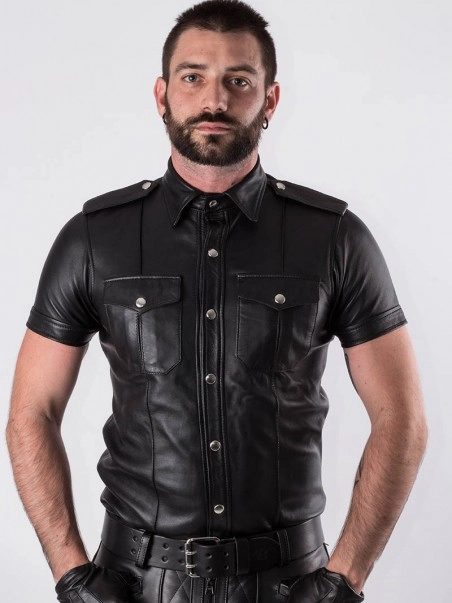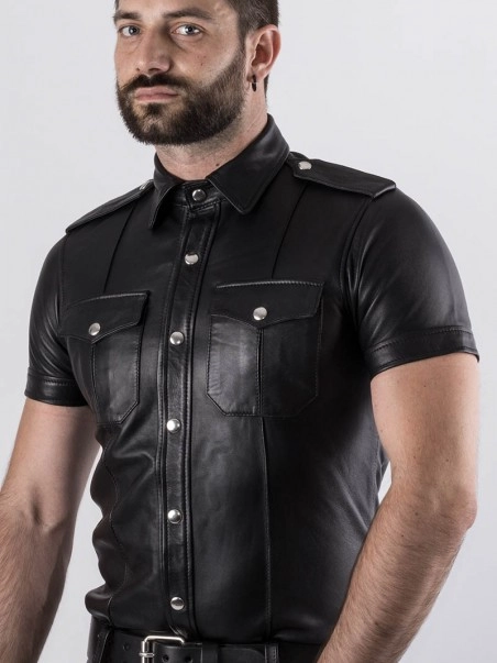 Cette chemise manches courtes calquée d’après le modèle des chemises d’uniformes américains dispose de deux poches sur le devant ainsi que d’épaulettes. Son cuir souple lui confère confort et légèreté. TaillesSML. Tour de poitrine (cm) 88-9696-104104-112.
