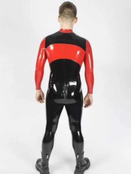 Affirmez votre style avec cette combi totale en latex au design unique, mu00ealant le noir et le rouge, les couleurs iconiques de la communautu00e9 fetish. Avec son zip avant allant jusqu’au dessus des fesses u00e0 l’arriu00e8re, vous pourrez la mettre et l’enlever facilement.