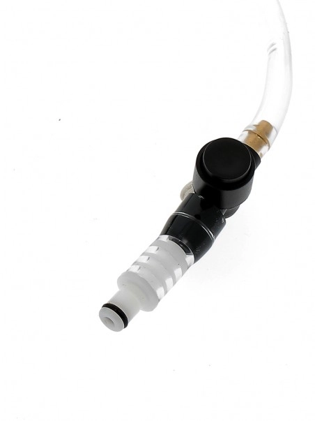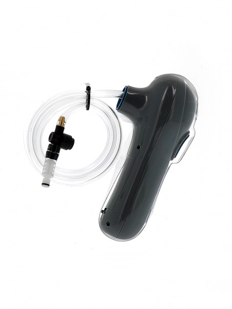 Lu2019utilisation de la pompe u00e0 bite est tru00e8s simple. Vous devez clipser le connecteur mu00e2le (reliu00e9 au tuyau souple de qualitu00e9 professionnelle) u00e0 un de nos cylindres pour pu00e9nis.
