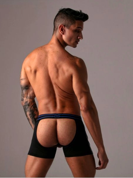 Il nu2019y a pas de doute, ce short est fait pour baiser. Cette cru00e9ation originale de la marque Locker Gear, imite la coupeu00a0du2019une paire de chaps, mais dans une version short ou00f9 vous u00eates complu00e8tement exposu00e9 devant comme derriu00e8re.