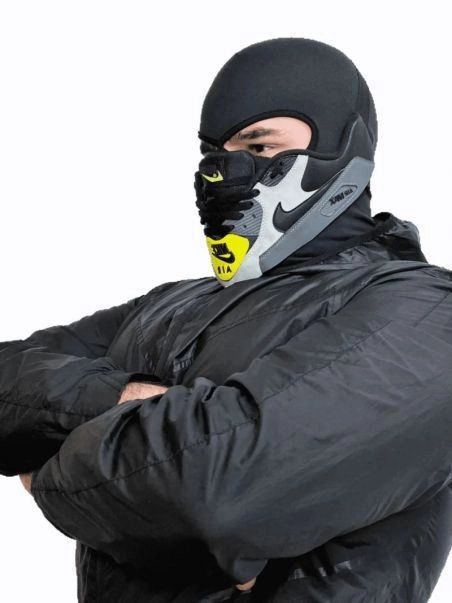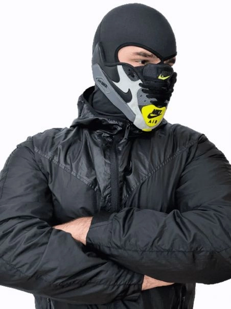 Sneakermask est une marque créée par un styliste fétichiste du sport qui propose une gamme de masques fabriqués à partir de baskets Nike ou de grandes marques pour un look unique.