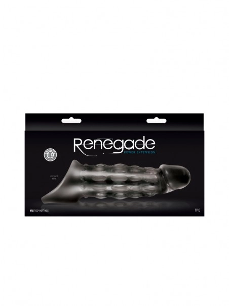 Plus c’est gros, mieux c’est ! La gaine pu00e9nisu00a0Renegade Power Extension est lu2019accessoire ultimeu00a0pour le plaisir et lu2019amu00e9lioration des sensations pour vous et votre partenaire.u00a0Prouvant son efficacitu00e9 contre lu2019u00e9jaculation pru00e9coce, cette extension fantastique ajoute 5 cm u00e0 votreu00a0virilitu00e9. Robuste mais flexible pour un confort maximal, ce bad boy est fabriquu00e9 en Silicone TPE de haute qualitu00e9.