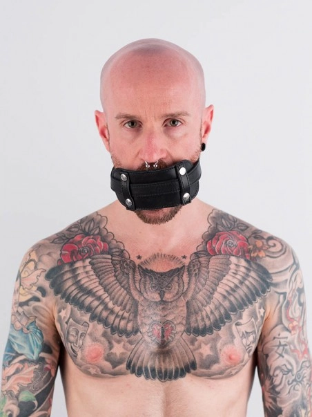 Bu00e2illon en cuir et latex, avec sangle ru00e9glable, confortable (6 cm) pour un port de longue duru00e9e.