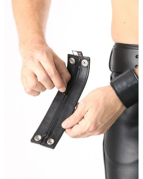 Ce bracelet en cuir d’une largeur de 4.5cm dispose d’une poche zippu00e9e permettant d’y mettre de la monnaie ou le ticket de vestaire. TaillesSML Tour de poignet (cm)16-1717-1818-19.