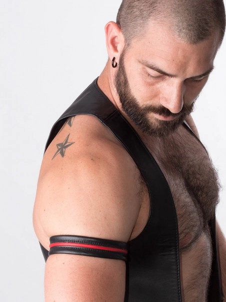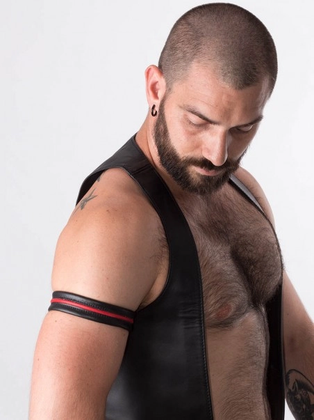 Ce brassard en cuir avec liseru00e9 dispose de boutons pression capable de s’adapter au diffu00e9rentes circonfu00e9rences de bras (26, 28, 30 et 32 cm). Disponible en 5 couleurs diffu00e9rentes.