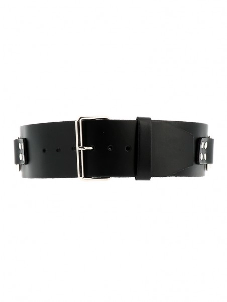 Ceinture en cuir composu00e9e de 4 parties de 2 longueurs diffu00e9rentes reliu00e9es par des boucles. La ceinture se transforme au gru00e9 des trips, en collier, menottes pour poignet ou tour de bras. Cette ceinture permet d’avoir sur soi au quotidien les accessoires nu00e9cessaires pour parer u00e0 une rencontre impru00e9vue !
