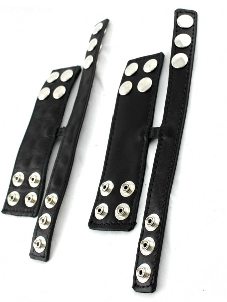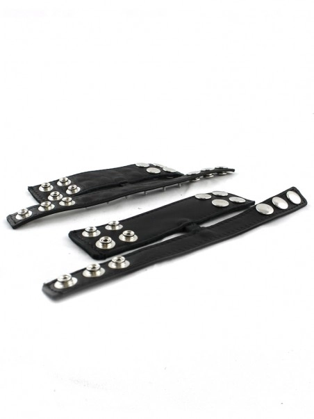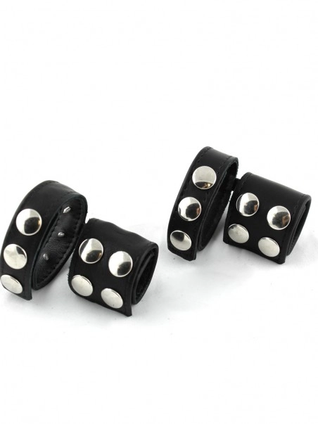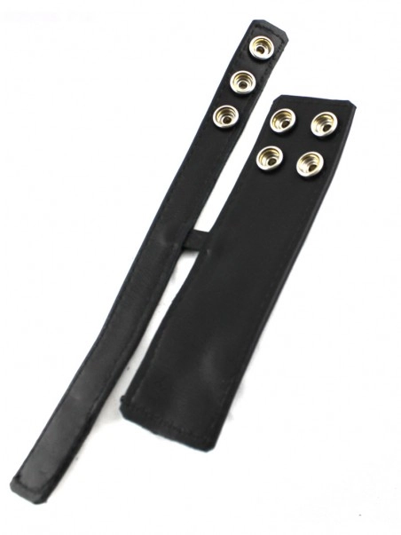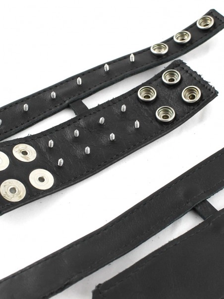 Cockring en cuir. Ru00e9glable avec fermeture par bouton pression (diamu00e8tre 40 u00e0 50 mm). La sangle plus large est placu00e9 sur les testicules afin de les u00e9tirer. Disponible en diffu00e9rents modu00e8les.