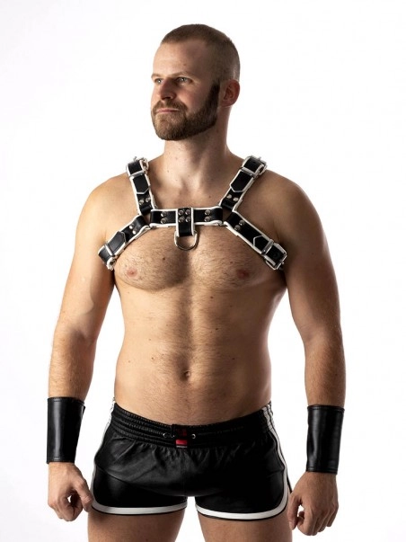 Comme tous les harnais en forme de H, le harnais RoB en cuir se porte à mi-poitrine, la boucle centrale devant toujours être pointée en direction du bas.