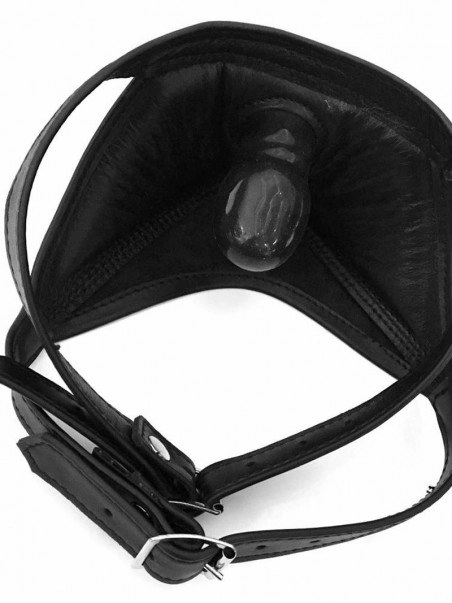 Bu00e2illon/museliu00e8re en cuir et latex,u00a0plug fixe (6 cm), cuir rembourru00e9 confortable pour le port longue duru00e9e.