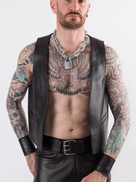Notre gilet en cuir classique, toujours confectionné dans un cuir souple de qualité. Le gilet recouvre juste ce qu’il faut les tétons, tout en laissant une belle ouverture pour laisser entrevoir le buste. Le gilet est fait dans un cuir souple et résistant. La veste en cuir se porte indifféremment à même la peau, sur un t-shirt (RoB Paris bien entendu) avec un chaps, un pantalon en cuir, un jeans…