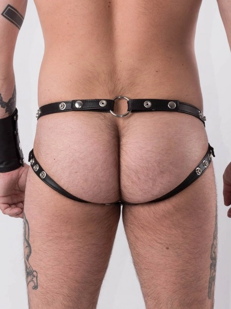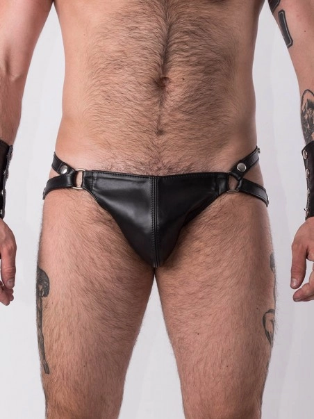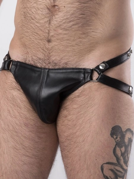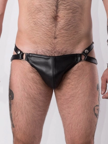 Jockstrap en cuir u00e9pais.Le jockstrap dispose de sangles ru00e9glables (boutons pressions) u00e0 la taille et sur les cu00f4tu00e9s.