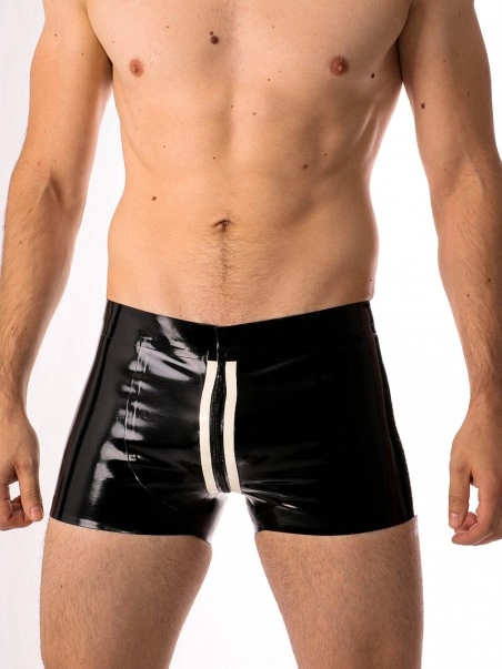 Le boxer STRIPE, fait dans un latex de 0,30mm d’u00e9paisseur se caractu00e9rise par des bandes de couleur avec un renflement au niveau du paquet, ainsi qu’un full zip double curseur permettant de l’ouvrir aux endroits stratu00e9giques.