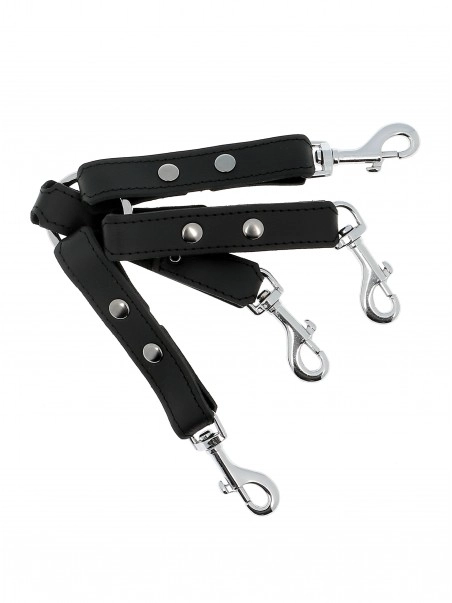 Notre nœud BDSM en cuir est un accessoire indispensable des jeux SM. Il permet de relier dans les dos les chevilles et les poignets du soumis pour le maintenir à la merci de son maître. La longueur de chaque lanière est de 16.5 cm.